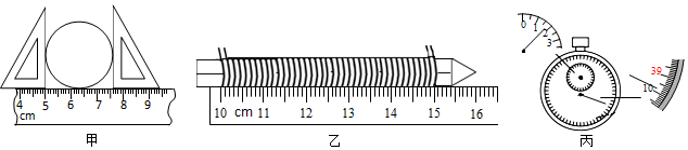 15.如圖所示,1元硬幣直徑的測量值是cm;利用一根粗細均勻的鉛筆和刻度尺來測量細鐵絲的直徑,線圈圈數是32圈,則鐵絲的直徑是(保留兩位小數)cm;秒表所測的時間為s。