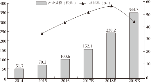 2014~2019年中國人工智能產(chǎn)業(yè)規(guī)模及預測