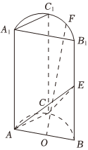 20.如圖,A,B,C為圓柱底面圓周上三個不同的點,AA1,BB1,CC1分別為半圓柱的三條母線,且C是的中點,O,E分別為AB,BB1的中點.?AB