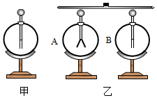 (1)如圖甲,用毛皮摩擦橡膠棒,把橡膠棒與驗電器A的金屬球緩慢接觸,可以看到 ,此時驗電器的兩片金屬箔帶的是 (同種/異種)電荷;