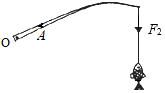 23.如圖所示為釣魚竿釣魚的示意圖,O為支點,A點是手抓釣魚竿的位置,F2表示魚線對釣魚竿的拉力,請在圖中畫出作用在A點的最小力F1與力F2的力臂l2。(用尺規作圖,保留作圖痕跡)組卷:57引用:1難度:0.5解析 -