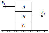 16.如圖所示,A、B、C三個物體疊放在一起。在水平力F1=F2=5N牛作用下,以共同的速度在水平桌面上勻速滑動。則此時物體B作于用A的摩擦力為 牛,B作用于C的摩擦力為 牛,地面對C的摩擦力為 牛。組卷:52引用:1難度:0.7解析 -