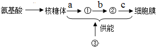 16.如圖表示分泌蛋白的合成、加工和運輸過程,①、②、③表示細胞器,a、b、c表示某些過程。下列說法中錯誤的是( )組卷:0引用:1難度:0.7解析