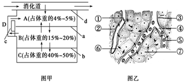 (1)若某人長期營養(yǎng)不良,血漿中蛋白質(zhì)減少,會引起圖甲中[]中的液體增多,其結(jié)果將會引起.