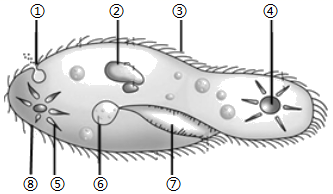 (3)草履蟲攝取的食物由[⑦]進入體內,形成[⑥],隨著細胞質流動,其中的食物逐漸消化。